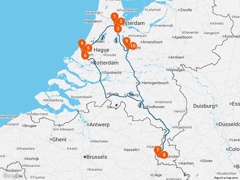 This 11-day Netherlands road trip highlights the country’s unique beauty – from the iconic canals of Amsterdam to the historic elegance of The Hague, the charming streets of Maastricht, and the vibrant university city of Utrecht. You’ll experience picturesque landscapes, rich cultural heritage, world-class museums, and quintessential Dutch architecture – all connected by a scenic, easy-to-drive route through the heart of the Netherlands.